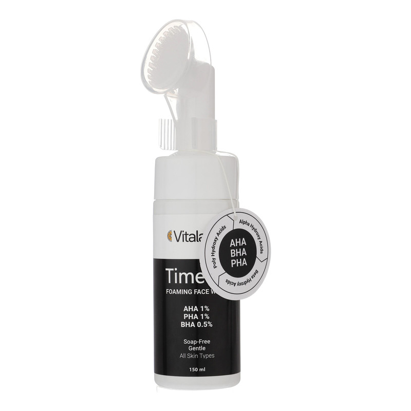 فوم شست و شوی صورت تایم ویت ویتالیر | 150 میل این پاککننده صورت برای انواع پوست چرب، مختلط، خشک، معمولی و حساس کاربرد دارد و فرمولاسیون آن بسیار غنی است. متخصصان پوست از آلفا هیدروکسی اسیدها، بتا هیدروکسی اسیدها و پلی هیدروکسی اسیدها در تولید این فوم شستشو بهره بردهاند و قدرت پاککنندگی و سازگاری آن را بسیار افزایش دادهاند.
