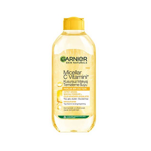 میسلار گارنیر به آرامی 100 درصد آرایش را پاک نموده و پوست را از آلودگی ها، چربی، سلول های مرده پوستی و SPF مبرا میسازد. پوست به سادگی تسکین می یابد و به راحتی از ناخالصی ها عاری گشته و سالم میگردد. در همین حیث پوست را یکدست و روشن مینماید. گارنیر به لطف فرمولاسیون بینظیر خود در این نوع از میسلار خود، میسل را با آنتی اکسیدان های قوی، ویتامین C ترکیب نموده و این پاک کننده قدرتمند را خلق کرده است.
