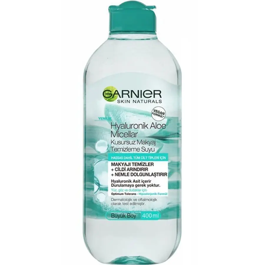 برند گارنیه میسلار واتر حاوی عصاره آلوئه ورا و هیالورونیک اسید تولید کرده است. این میسلار برای پاک کردن انواع آرایش صورت، چشم ها و لب ها کابرد دارد و به راحتی آرایش های ضد آب را نیز پاک می کند و برای انواع پوست حتی پوست های حساس مناسب است.این محصول وگان است و تست حیوانی ندارد.در تهیه این محصول از جدید ترین فرمولاسیون بهره گرفته شده و به همین دلیل هیچ گونه عوارض خشکی پوست را ندارد. پس از استفاده از این محصول نیازی به شستشوی پوست نیست و همان گونه که از نامش پیداست حاوی ترکیبات میسل می باشد ک ناخالصی ها و آلودگی ها را از پوست می زداید و سبب شفاف شدن، لطیف شدن و پاکیزه شدن پوست می گردد.عصاره آلوئه ورا که به میزان قابل توجهی در ترکیبات این میسلار وجود دارد؛ نرمی فوق العاده ای به پوست می بخشد؛ خاصیت آرامش بخشی در پوست صورت دارد.هیالورونیک اسید موجود هم موجب آبرسانی و حفظ رطوبت در پوست می شود.