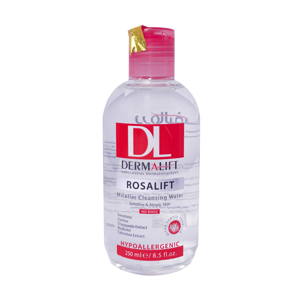اگر به دنبال خرید میسلار واتر مناسب و باکیفیت برای پوستهای آتوپیک هستید، پیشنهاد میکنیم خرید محلول میسلار واتر پوست حساس رزالیفت درمالیفت را امتحان کنید. این محلول با پاک کنندگی سه کاره میتواند آرایش صورت، دور چشم و لبهای شما را به صورت کامل پاک کند. بعد از استفاده از این محصول، شاهد کاهش قرمزی و حساسیت پوست هستید زیرا فاقد الکل، اسانس، پارابن و مواد صابونی است. این محلول نیاز به آبکشی ندارد و کافیست به اندازه کافی روی پد آغشته نمایید و آرایش صورت خود را پاک کنید.