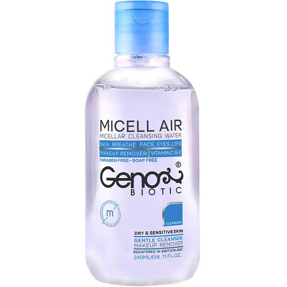 میسلار واتر پوست خشک و حساس ژنوبایوتیک، یک پاک کننده فوق العاده ملایم مخصوص پوست های خشک و حساس است که هر گونه آلودگی، چربی اضافی و آرایش های غلیظ و ضد آب را از روی صورت، لب و چشم ها به طور کامل پاک می کند، ولی به دلیل اینکه حاوی ترکیبات مرطوب کننده است، باعث ایجاد احساس خشکی و کشیدگی روی پوست نمی شود. همچنین این محصول فاقد مواد صابونی، پارابن، روغن و الکل می باشد، بنابراین هیچ گونه حساسیت و التهابی برای پوست ایجاد نخواهد کرد.