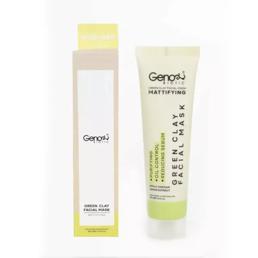 ماسک صورت و گردن حاوی خاک رس سبز ژنوبایوتیک با داشتن سرکه سیب، که یکی از بروزترین ترکیبات در محصولات آرایشی بهداشتی است، به کنترل سبوم پوست کمک کرده، منافذ عمیق پوست را پاک نموده و چربی اضافی پوست را از بین میبرد. از دیگر موارد به کار رفته در ساخت این محصول میتوان به عصاره لیمو اشاره کرد که با خاصیت مات کنندگی قوی پوست، برق آزاردهنده پوست را از بین میبرد.