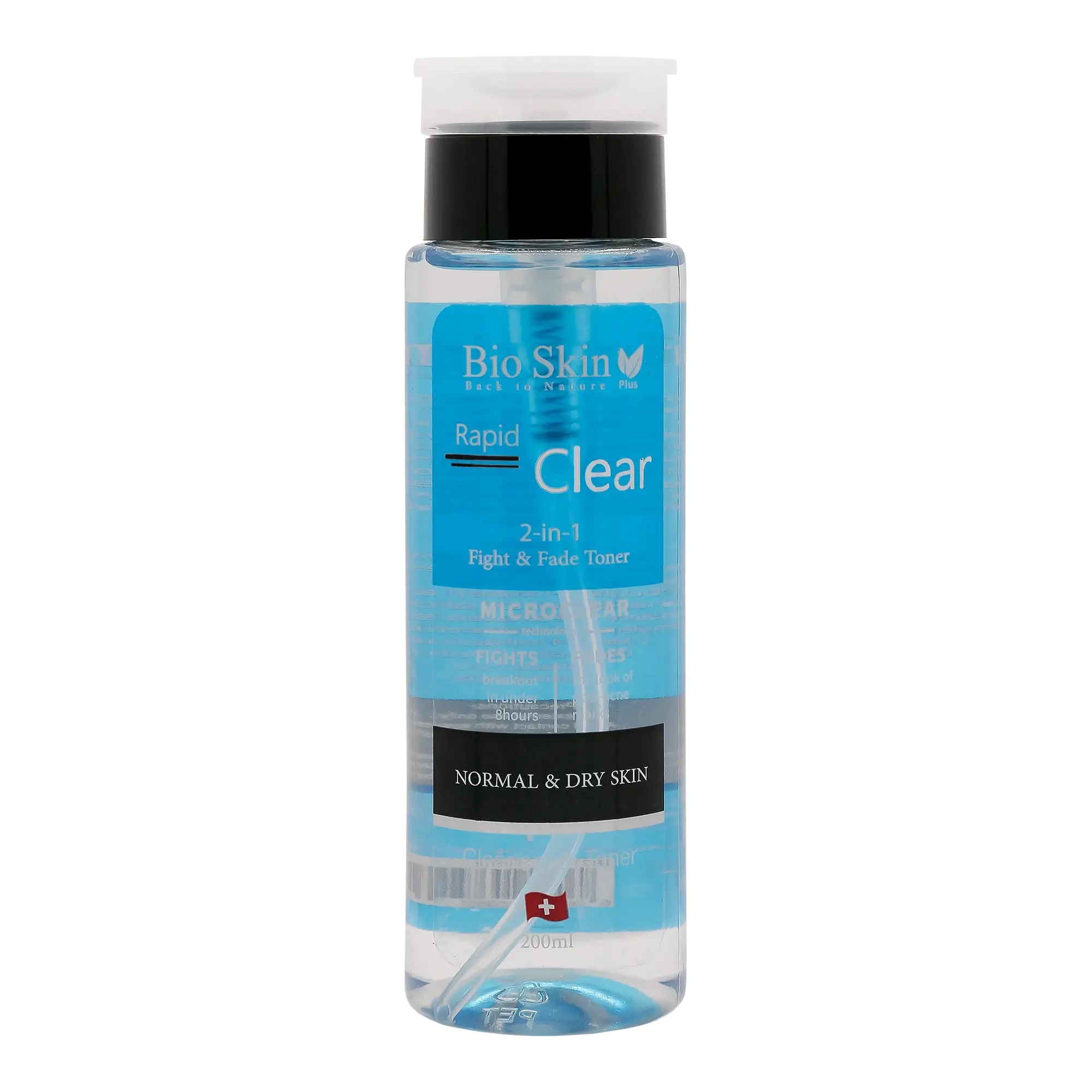 تونر پوست خشک بایو اسکین عملکردی دو جانبه دارد و در حین پاک کردن آلودگی ها از سطح پوست موجب تنظیم PH آن می شود.