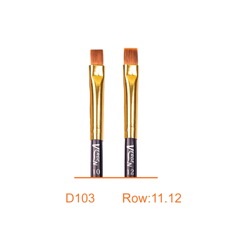 قلم های D103-D102 به شما برای کشیدن یک رژلب راحت تر با بافت بهتر کمک میکند. ورژن 9سایز مختلف دارد که با توجه به حجم لب و تعداد متریال استفاده کننده خود سایز های مورد نیاز خود را تهیه کنید، معمولا به افراد با توجه به تجربه خود و حجم مواد به سایز های مختلف نیاز دارند. اما بطور متوسط شما به 4 شماره مختلف نیاز دارید یک شماره کوچک برای خط لب-متوسط برای رژلب-یکم بزرگ تر برای برق لب-و یک سایز بزرگ برای فیکس کردن رژلب، برس های صاف به شما کمک میکنند که یک رژلب منظم با بافت نرم و طبیعی داشته باشید و همچنین از قلم های D103 برای زیرساخت ارایش چشم مانند کانسیلر نیز استفاده میشود.