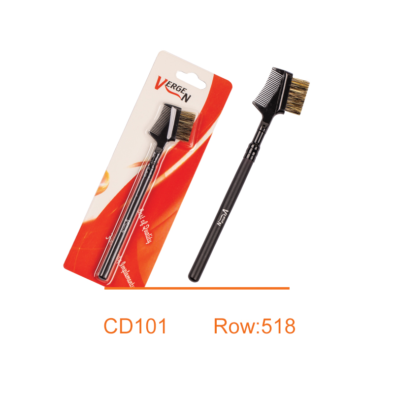 یک قلم موی کوچک با سر دو طرفه است. یک طرف آن دارای سر برس با موهای کوتاه و محکم (مصنوعی) است. طرف دیگر یک شانه کوچک با دندانه ظریف دارد – مناسب برای قرار گرفتن درابرو