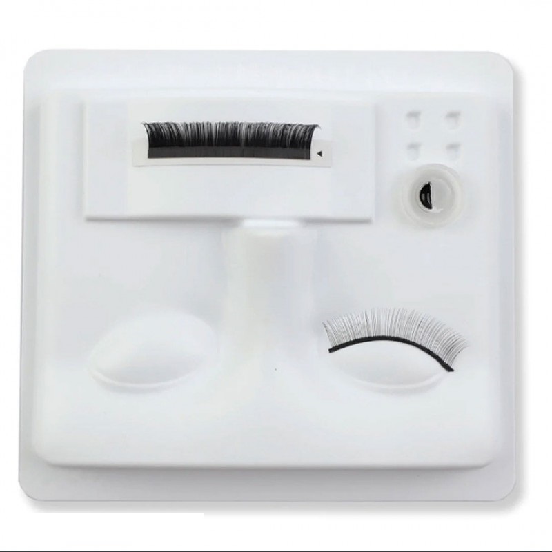صورت تمرينی مژه محصولی پرکاربرد ساخت کشور ایران است که امکان تمرین، آزمون و خطا را برای کارآموز فراهم میکند. جنس پلاستک مستحکم و باکیفیت این صورتِ تمرینی، مناسب چسباندن تارهای مژه مصنوعی است .همچنین در قسمتی از این صورت، محفظههایی کوچک جهت ریختن چسب کاشت مژه برای سهولت در انجام کار تعبیه شده. از آنجایی که مهارت و سرعت در کاشت مژه فاکتورهای اصلی ارائهی پایان کاری بینقص است، این محصول با در نظر گرفتن تمامی جوانب حین انجام کار به راحتی کارآموزان حین کارآموزی توجه ویژهای داشته است.