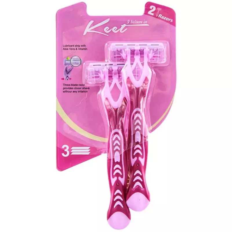 تیغ اصلاح کیت مدل صورتی 3لبه رازر 2 عددی