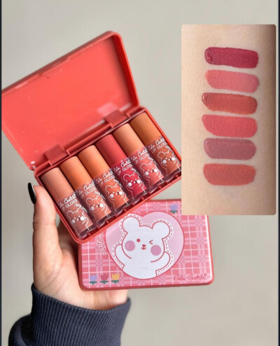 این پک رژ لب خرسی شامل ۶ رژلب در سایز مینی است که رنگ های آن بسیار جذاب و کاربردی است و روی لب اصلا پوسته پوسته نمیشود و ترک نمیخورد و ماندگاری ۲۴ ساعته دارد.